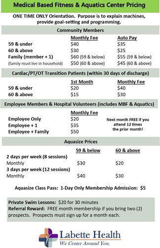 In accordance with Medical Fitness Association guidelines, The CORE offers: